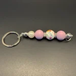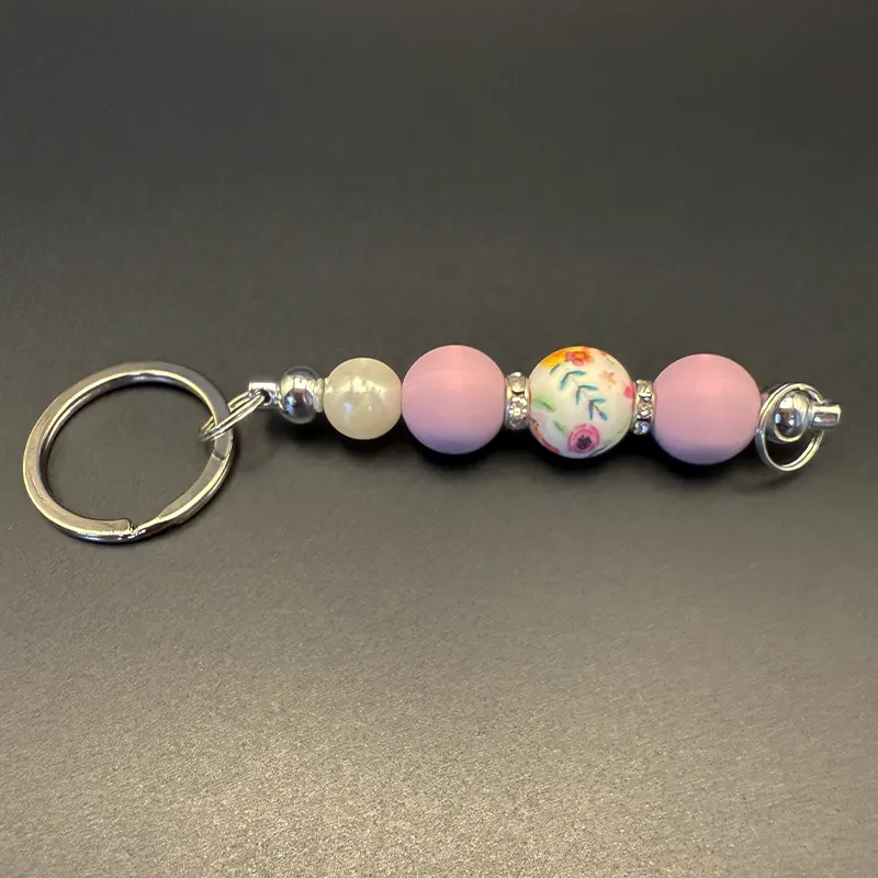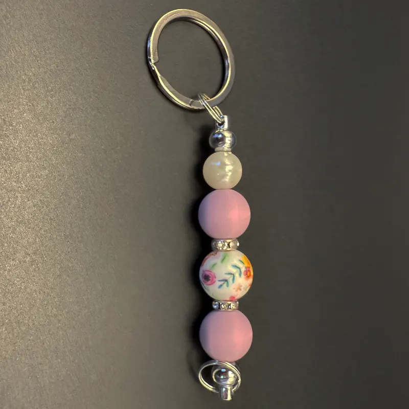 Beaded Light pink with teal floral print Keychain