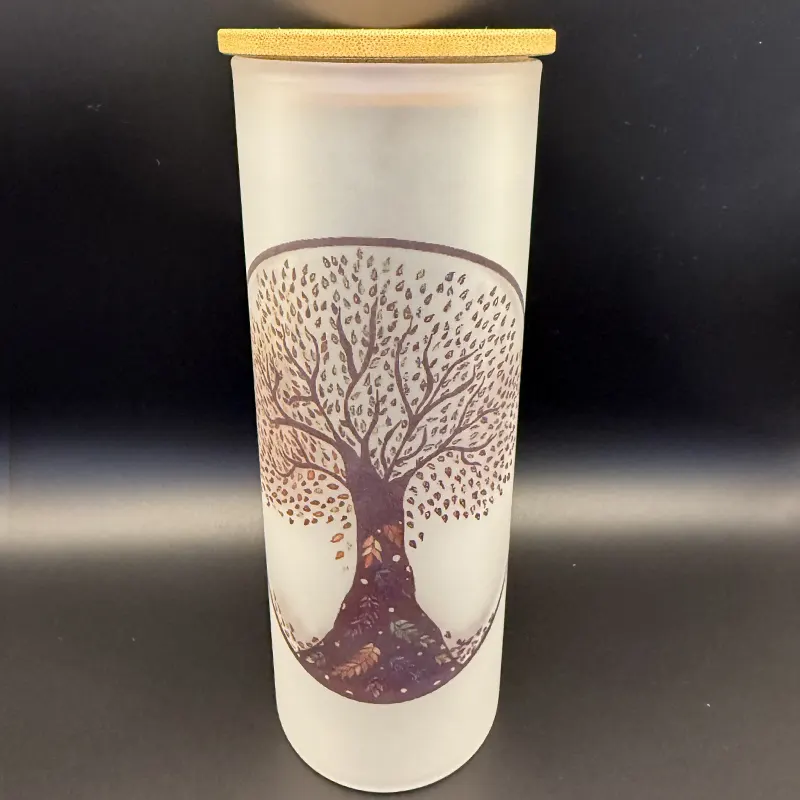 Home Kat Designz 20oz frosted glass tumbler with bamboo cover